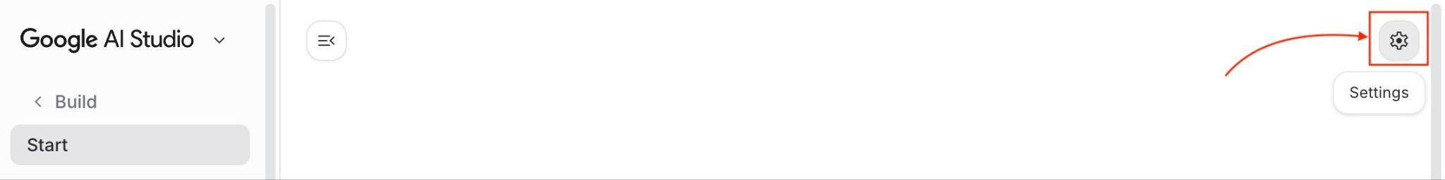 Before using the prompt to create the resume-reviewer app, you will choose the right model and application framework. To do this, you will click the gear ⚙️icon on the top right corner of the Google AI Studio build page: