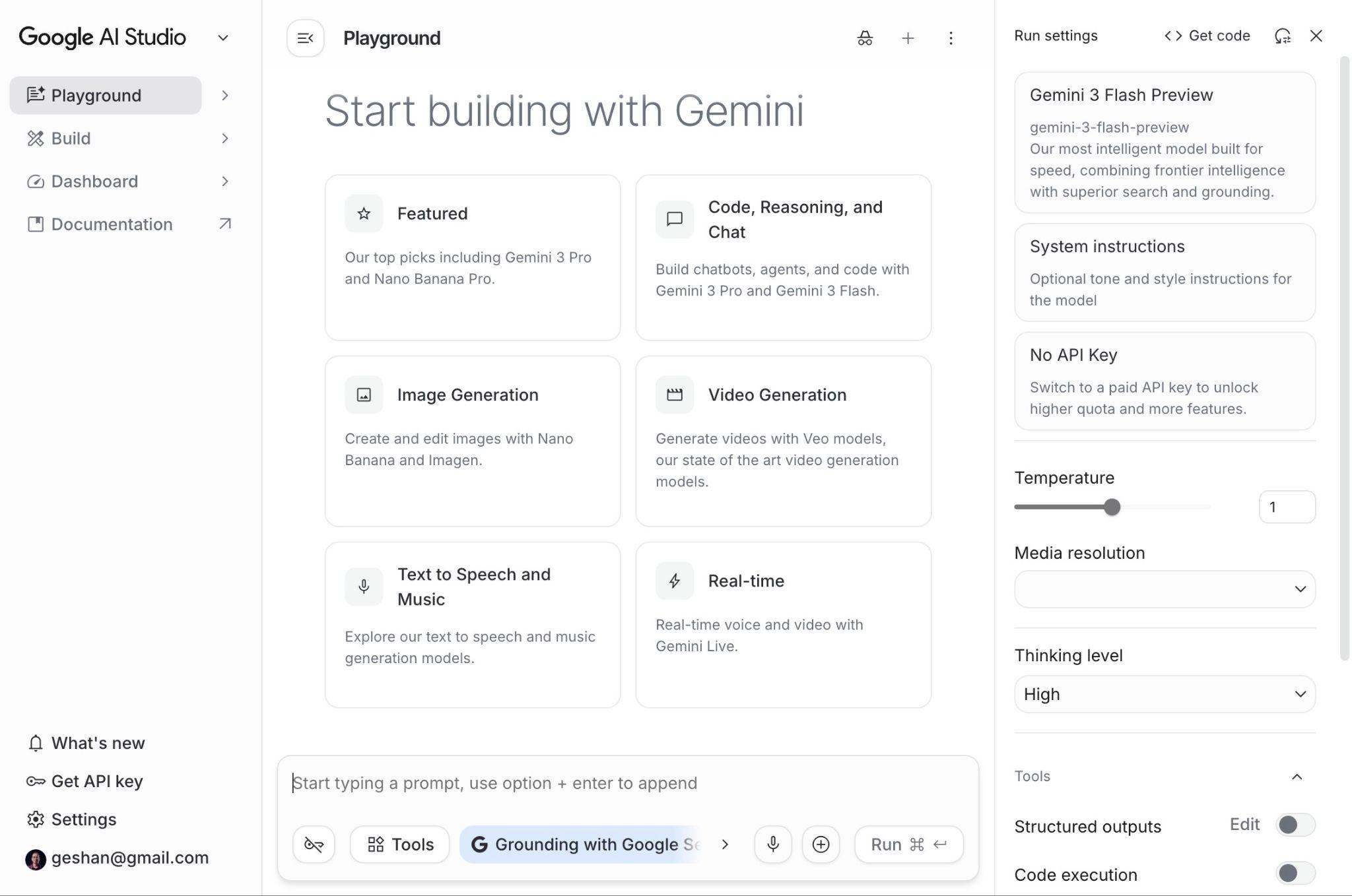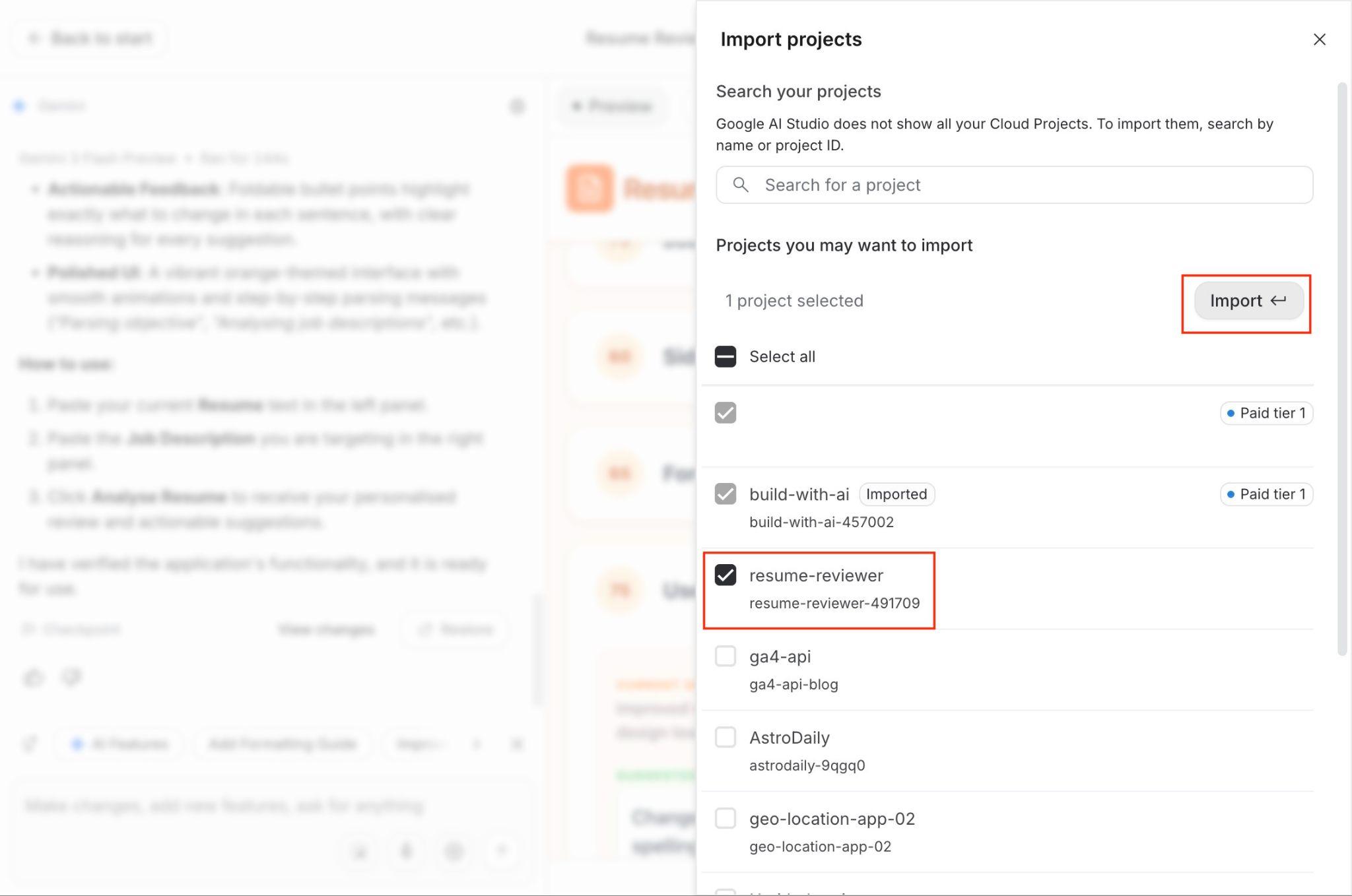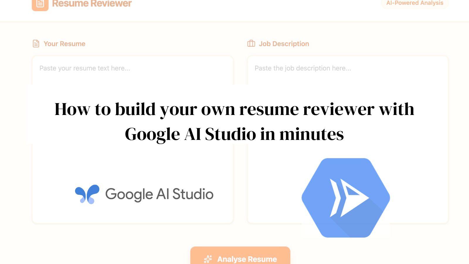 Using Google AI Studio's build feature, you can create any frontend application in React.js with a prompt. The Build feature in AI Studio generates applications that use the Gemini SDK and have no server-side components. The apps run in a sandboxed frame. For this workshop, you will create a tech resume reviewer that will score your resume out of 100 against a given job description. Let's get started!
