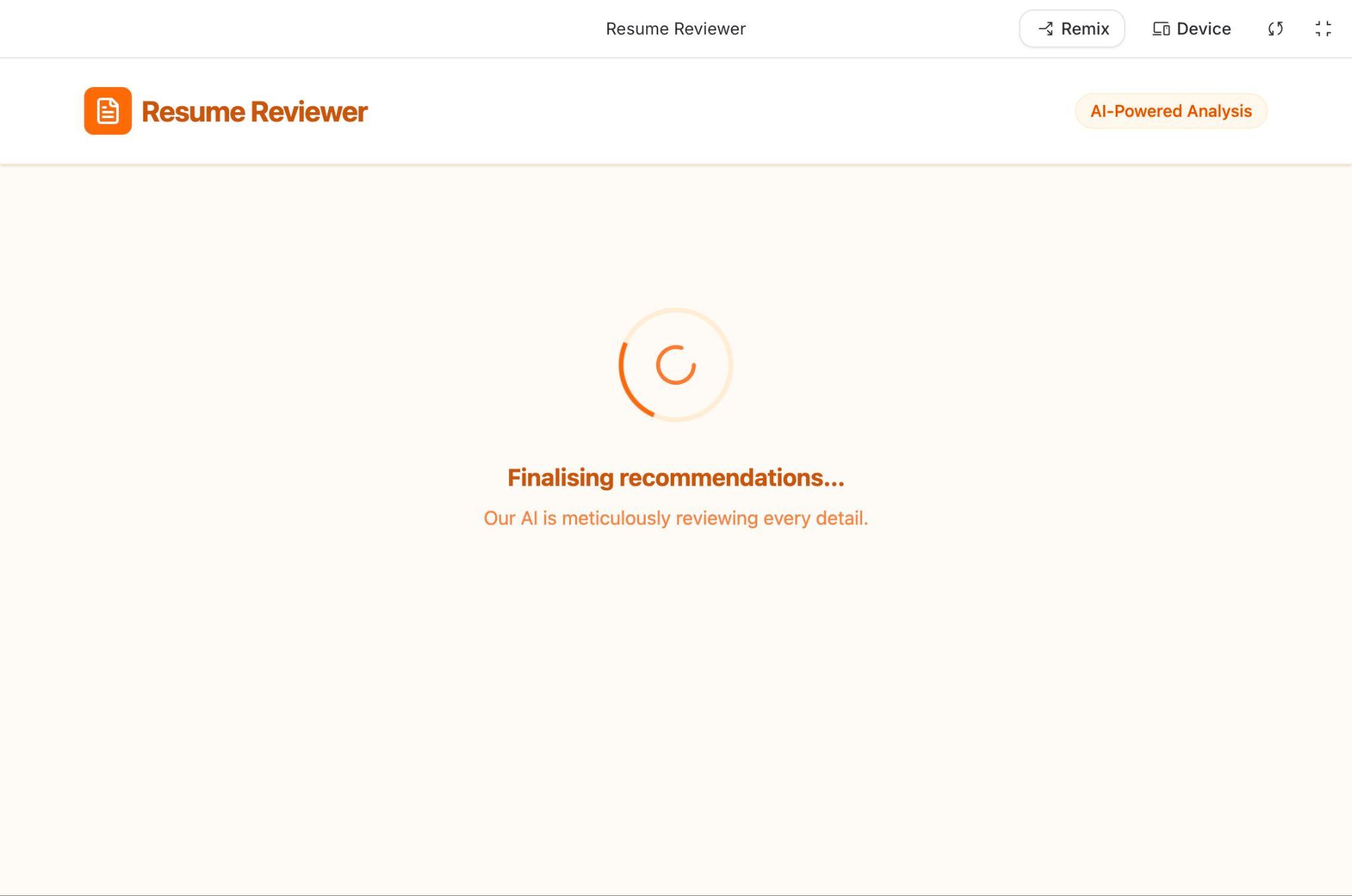 2. While uploading, show messages like "Parsing objective", "Analysing job descriptions", "Creating a personalised review",